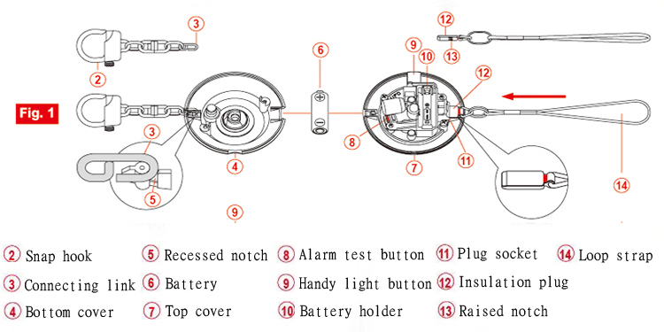 (1). Alarm Siren :Test 1 : Press the red button (The
